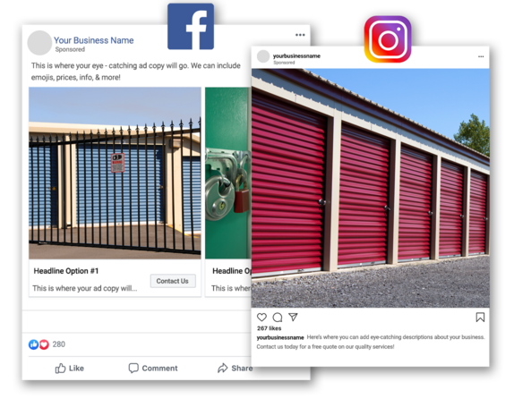 Utilizing Facebook’s advertising platform, we can tap into many different audiences of people on Facebook and Instagram. Social Media advertising has the unique ability to not only target the right Self Storage customer in the area of your choice, but it also allows social interaction between a customer and the Self Storage Business. People can comment, like, and share your post with other friends and family. Facebook also has the ability to use video and image ads to engage potential customers. Your customers are Facebook and Instagram, and we’ll use these platforms to reach them directly with your messaging.